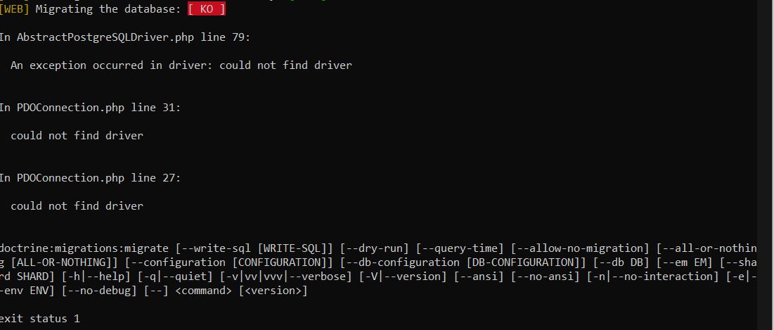 symfony new --version=5.0-3 --book guestbook --debug一切正常,请期待“迁移数据库”,这是一个错误: