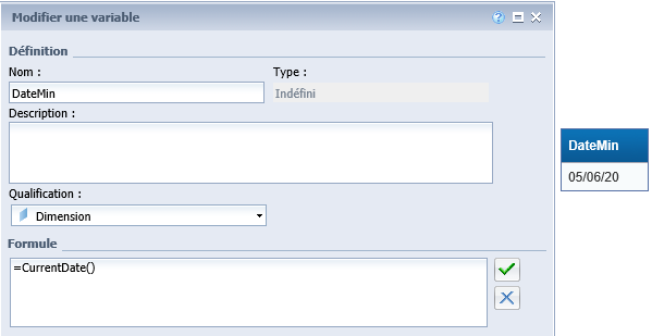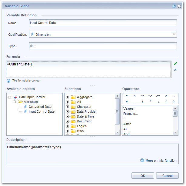 首先创建一个具有日期数据类型的值或公式的变量。我调用了变量输入控制日期。