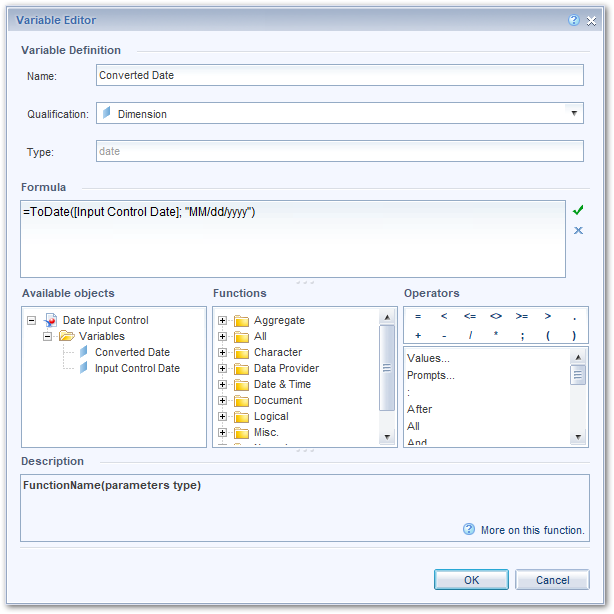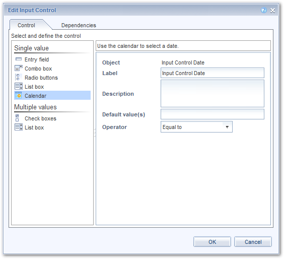 稍后我们会改变这一点。这样做的原因是,WebI将为您提供使用日历日期选择器创建输入控件的选项。
