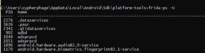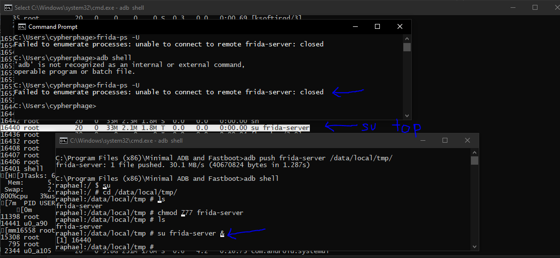 正如您在su top命令的输出中所看到的那样,frida服务器正在运行。