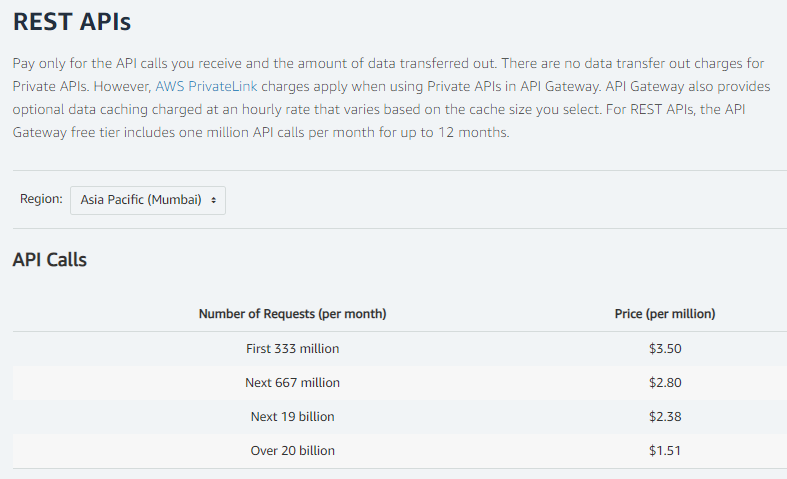 我们正在为ap-south-1 /孟买地区使用REST (REST)。定价页面上写着,