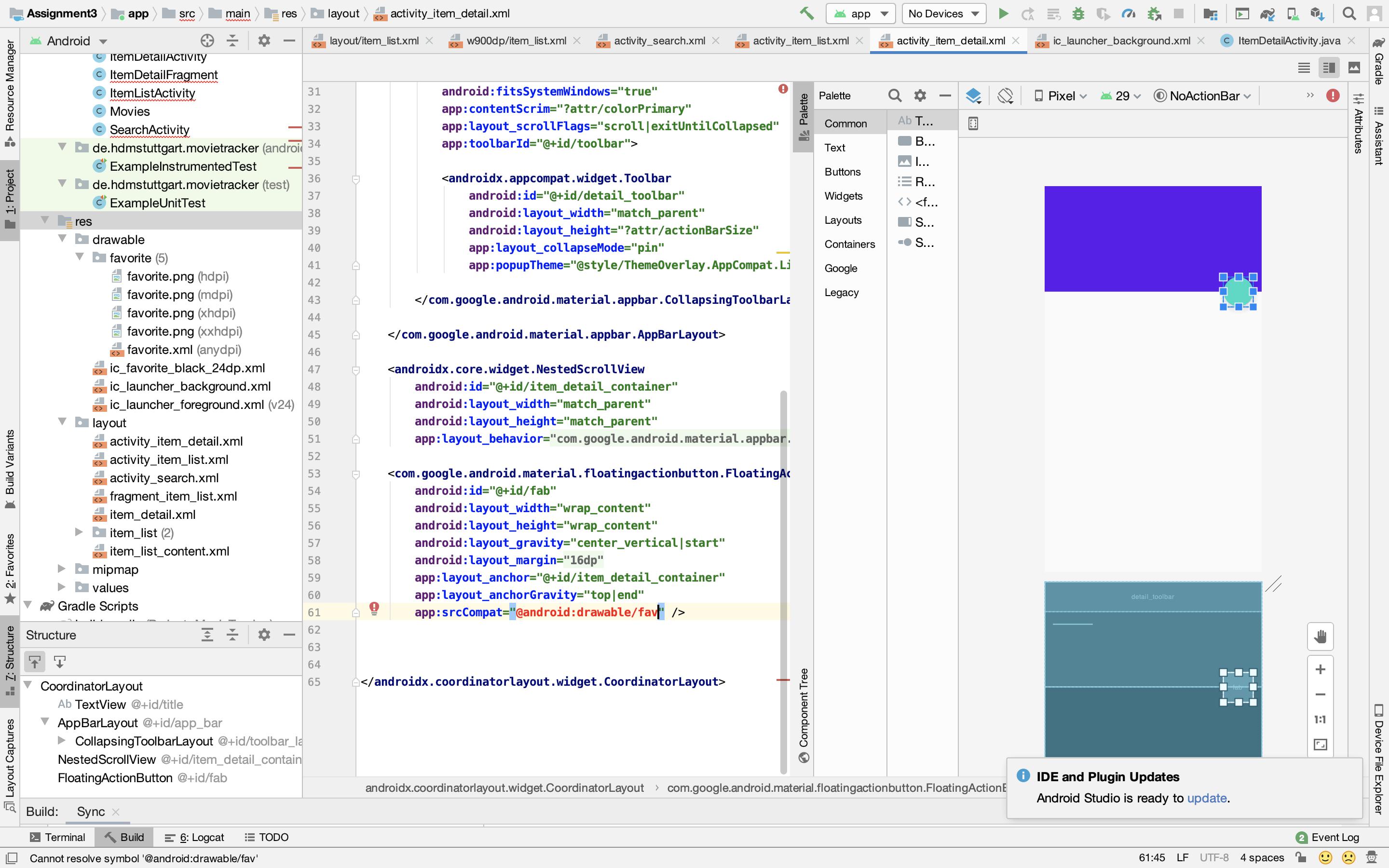 我试图从绘图文件夹中插入一个图标到FAB中,但是Android没有识别它。你能帮我弄清楚它为什么不起作用吗?谢谢。