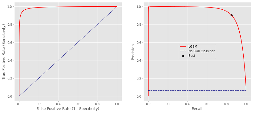 这意味着,当阈值大约为0.99999 (非常高的值)时,被预测为1类的第一个实例实际上是从0级开始的,从而导致召回和精确度为0。然后,当你降低阈值,你开始有大量的真正的积极,创造出垂直直线接近1精度。