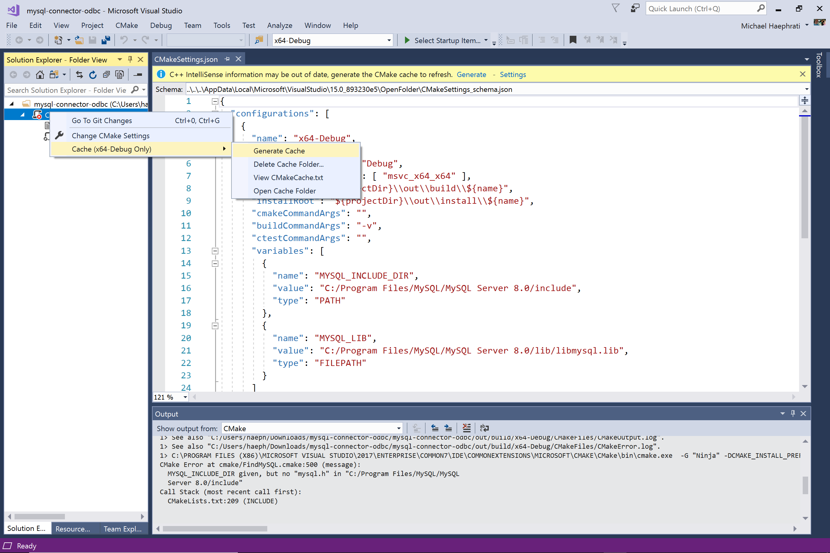 endif()CMakeSettings.json显示: