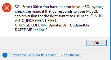 `UpdatedOn` DATETIME NOT NULL DEFAULT now(),