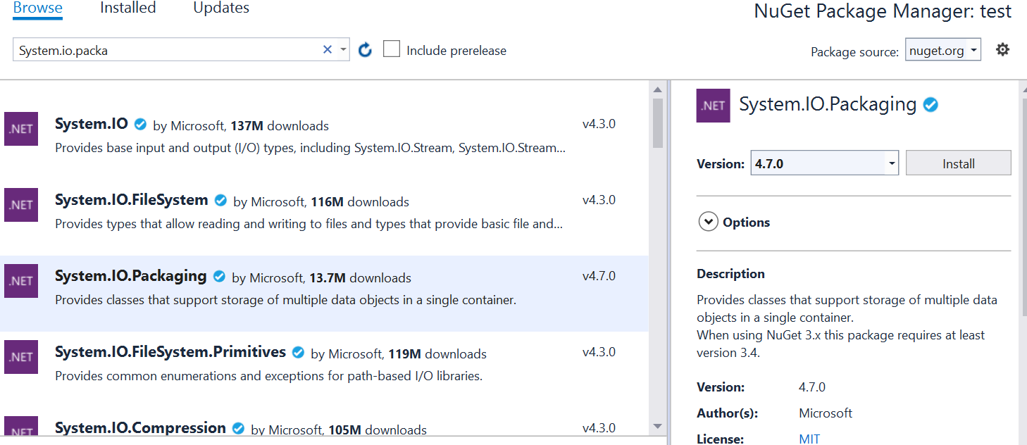 您需要安装System.IO.Packaging nuget软件包。