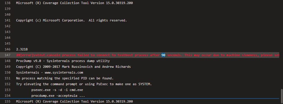 90秒后,errorvstest.console进程无法连接到testhost进程。这可能是由于机器速度慢,请设置环境变量VSTEST_CONNECTION_TIMEOUT以增加超时。