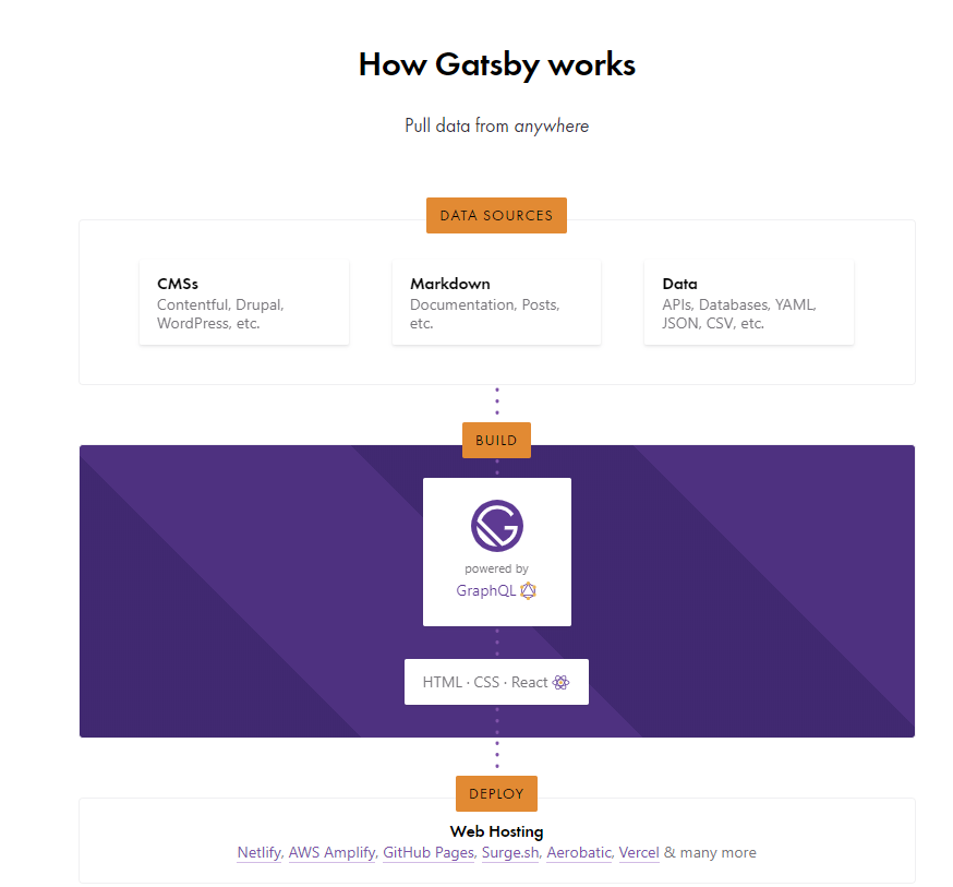 当您编译和构建代码时,它会生成一个简单的HTML,因此,在您的代码可能有一个<h1>{post.title}</h1>的情况下,一旦编译,它将从CMS收集的数据中生成<h1>Real title</h1>。这意味着“静态”,因为代码已经生成,无需额外的服务器调用。不是一个“静态”的意思是简单的,没有要求或其他什么。