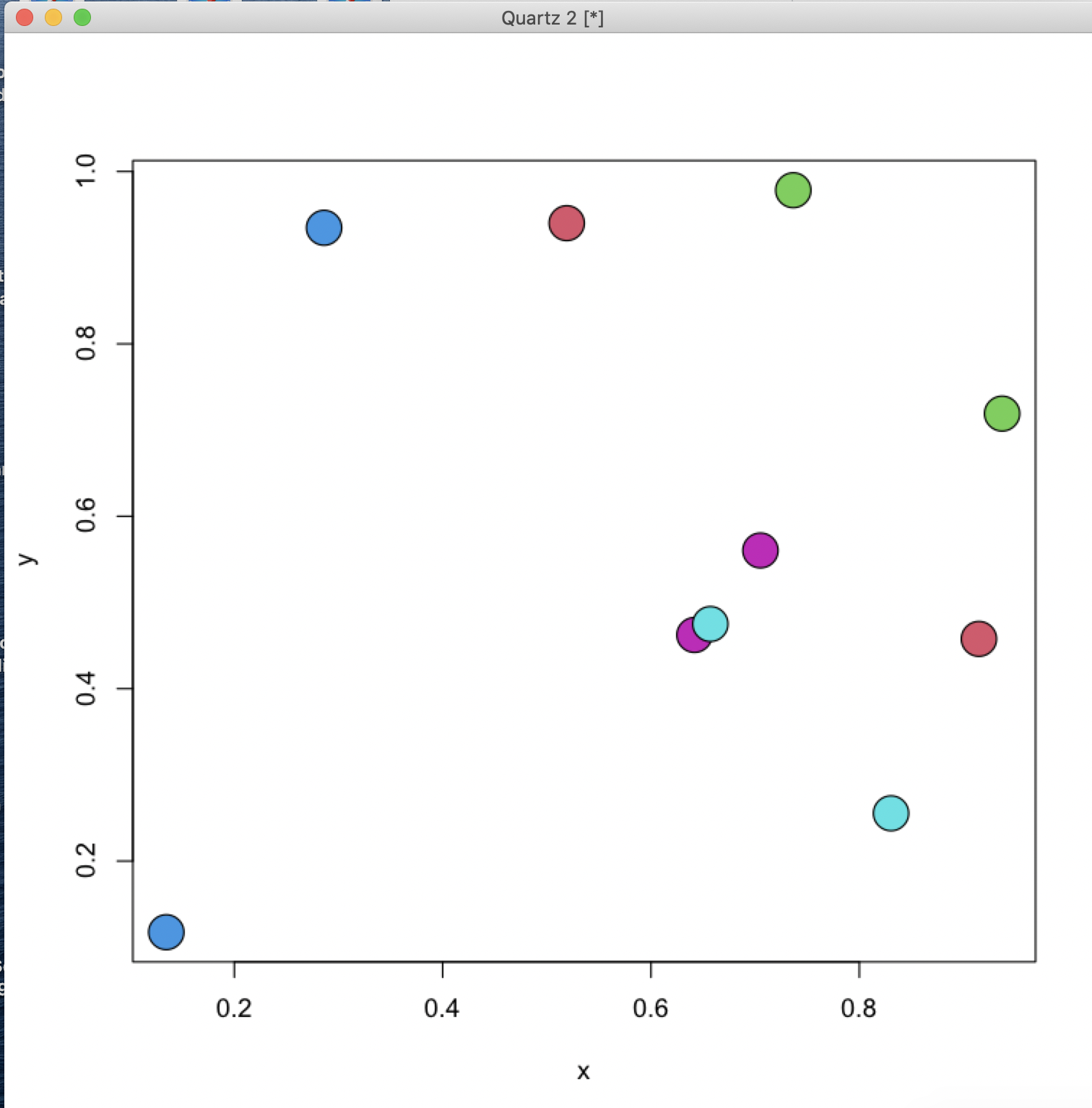 我对R非常陌生,所以请原谅我缺乏知识。我正在做一个需要软件包rgl的课程,并设法(最终)完成了我需要安装XQuartz的工作--我已经这样做了。这是可行的,但我不能让情节显示的颜色-他们只是黑色和白色。有人知道我做错了什么/如何解决它吗?我试过查看XQuartz文档,但无法解决这个问题。