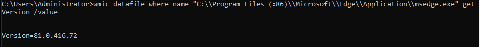 wmic datafile where name="C:\\Program Files (x86)\\Microsoft\\Edge\\Application\\msedge.exe" get Version /value