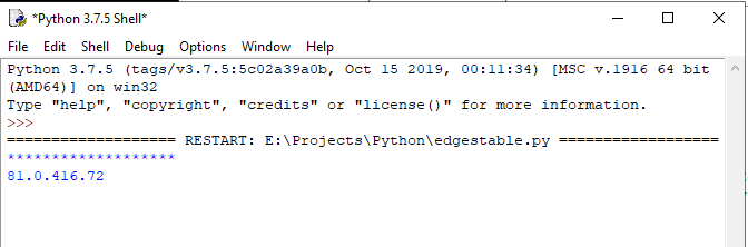 然后,使用driver.capabilities['browserVersion']命令在python中获取Microsoft版本,更详细,请检查以下代码(请记住更改您的路径):