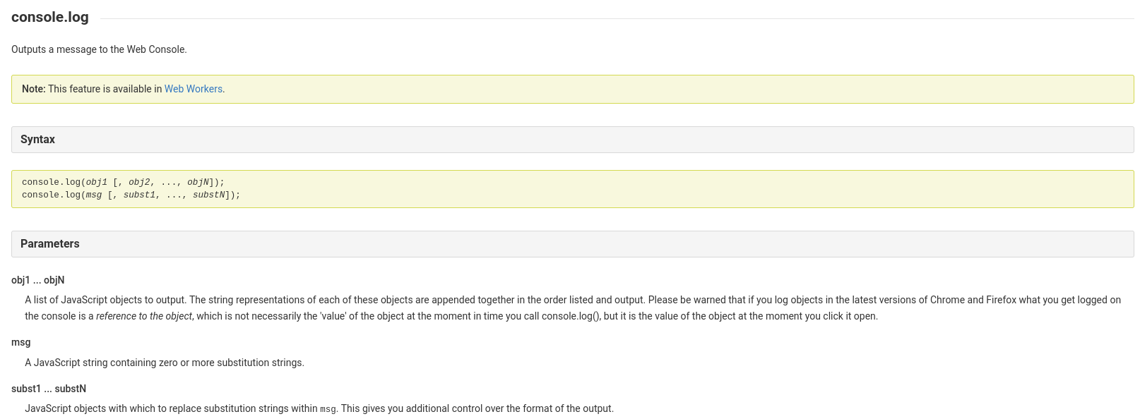 data https://developer.mozilla.org/en-US/docs/Web/JavaScript/Data_structures#Data_types…args https://developer.mozilla.org/en-US/docs/Web/JavaScript/Data_structures#Data_types用换行符打印到stdout。可以传递多个参数,第一个参数用作主消息,所有附加参数都用作类似于printf(3)的替换值(参数都传递给util.format())。