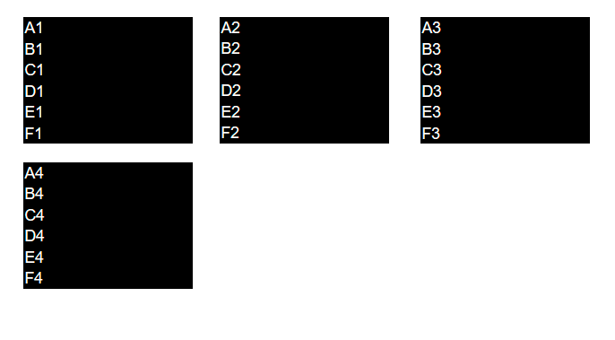 每一行都应该是块,表单元格以与html源相同的顺序堆叠在一起。然后,这些块应该被放置在一个网格中,这样就可以在屏幕宽度允许的范围内彼此相邻的块了。