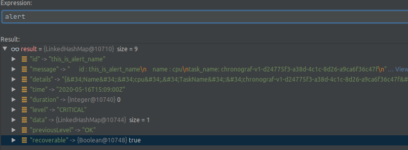 当在kapacitor中触发警报时,它会发送警报id (在chronograf中定义的警报名称),但我需要它的任务名称是自动生成的。