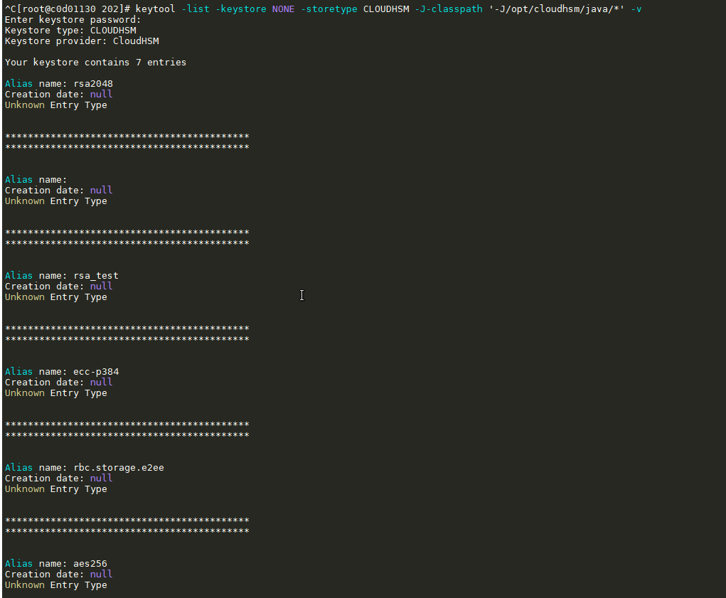 我使用带有配置的keytool进行了测试,创建了一个KeyPair,但是我无法查询回来。