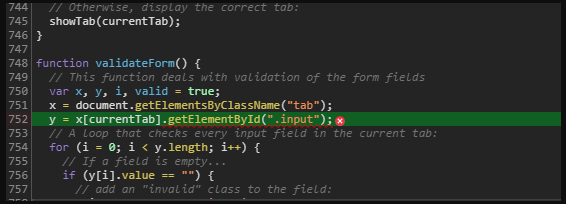 y = x[currentTab].getElementsByTagName("input");同样在您的图像中,如果您将id设置为输入,则为getElementById("input")。