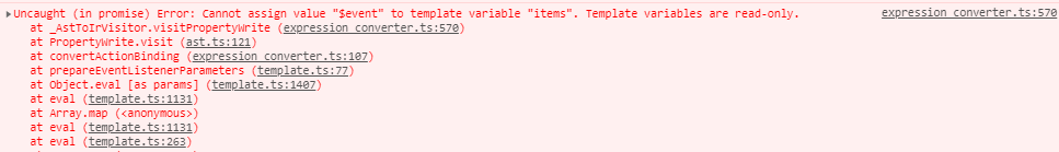 错误中不能将值"$event“分配给模板变量"applicationsList”。模板变量是只读的。