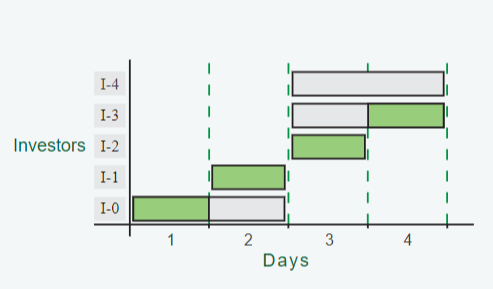 该计划由两个整数数组( firstDay和lastDay )组成。数组firstDay中的每个元素代表投资者可用的第一天,而lastDay中的每个元素代表投资者可用的最后一天,这两者都包括在内。