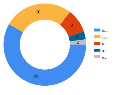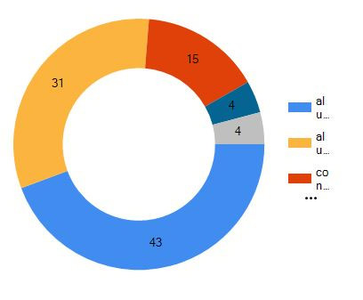 如果是这样,并且不希望整个图例文本出现在甜甜圈的各个部分(因为它们与甜甜圈本身重叠),则只能通过将Series->Label->IsValueShownAsLabel属性设置为true来显示值,并获得类似的内容: