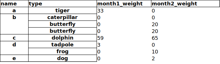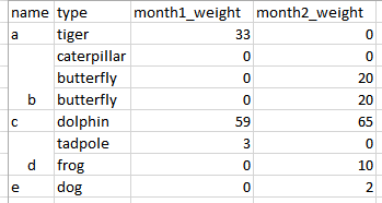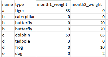 name type month1_weight month2_weight