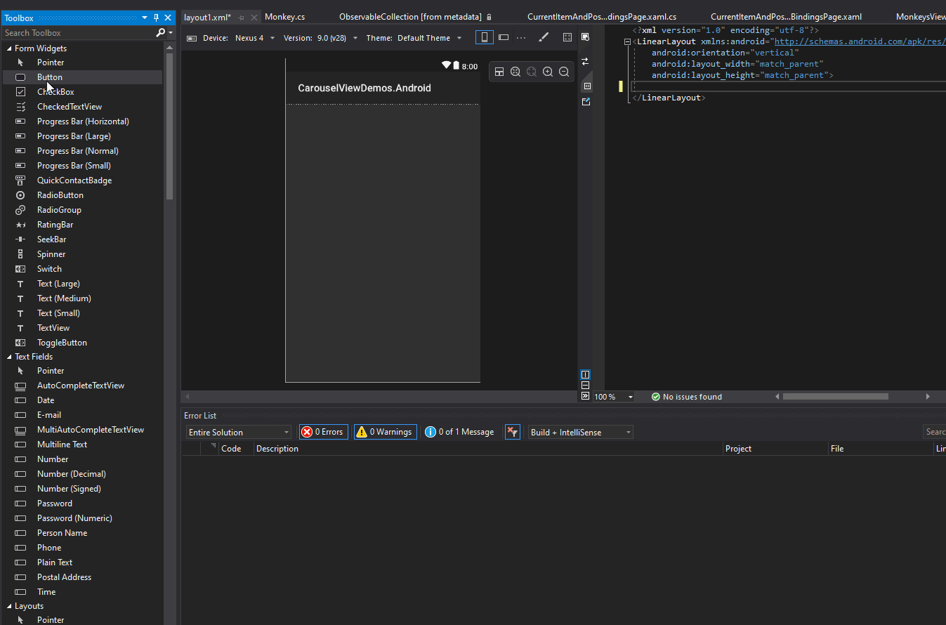 我只能拖放TextView,然后就没有别的东西可以加入了。