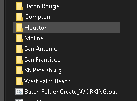 因此,最终的结果将是一个“休斯顿”文件夹与所有它的相应文件,“康普顿”文件夹与它的文件,一个“莫林”文件夹,等等.对于每一个城市,大约200个城市,和我们只得到更多。