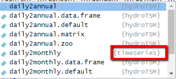 我开始从数据和代码中得到一个错误,这些数据和代码工作得很好,但现在没有了。这项工作是关于降雨数据和需要动物园的hydroTSM包。当我进入代码中的某个部分时,包含在hydroTSM包中的一个简单函数将不会运行。经过故障排除,我认为这是与动物园的包装有关,但不是100%确定。