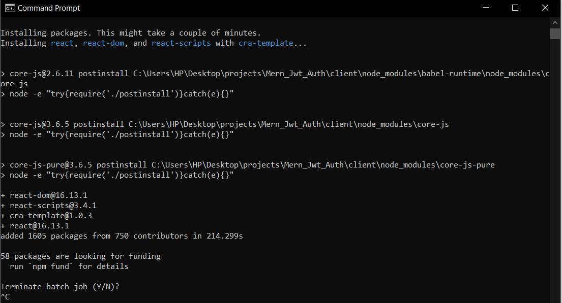 我的反应安装不成功。这是2-3天,我在寻找解决方案,经历了许多解决方案,但它没有像预期的那样起作用。