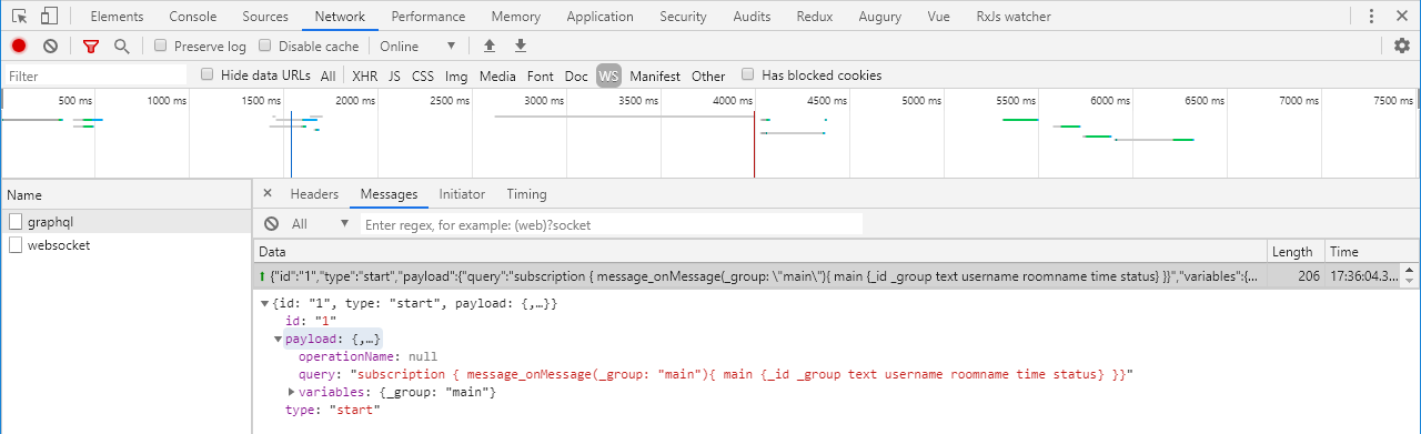 我试图使用以下库使用graphql订阅: