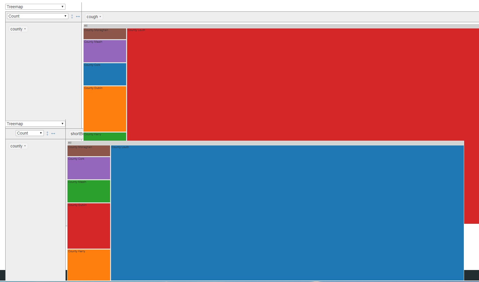 此代码工作和枢轴表绘制,但树状地图是巨大的,我需要它渲染到大约50%的当前大小,500 be将是目前的好。它似乎忽略了大小设置。一张枢轴表在绘制时与另一张重叠。