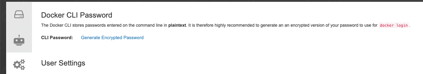 必须在设置选项卡中启用Docker CLI Password,然后转到菜单Generate Encrypted Password