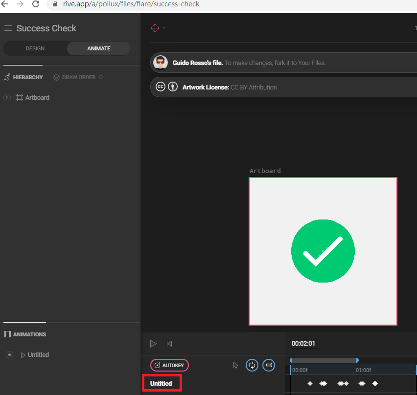 请更正您的_animationName,例如,下面的https://rive.app/a/pollux/files/flare/success-check _animationName是Untitled