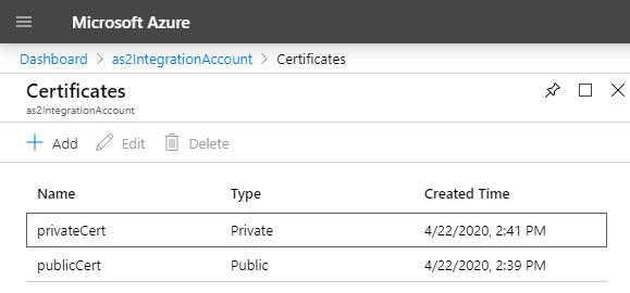 在此之后,转到您的集成帐户并将证书上传到它。