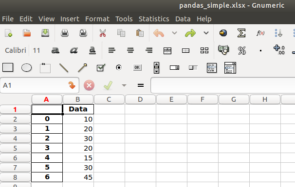 我尝试运行一个简单的xlsx文件并用gnumeric打开它。