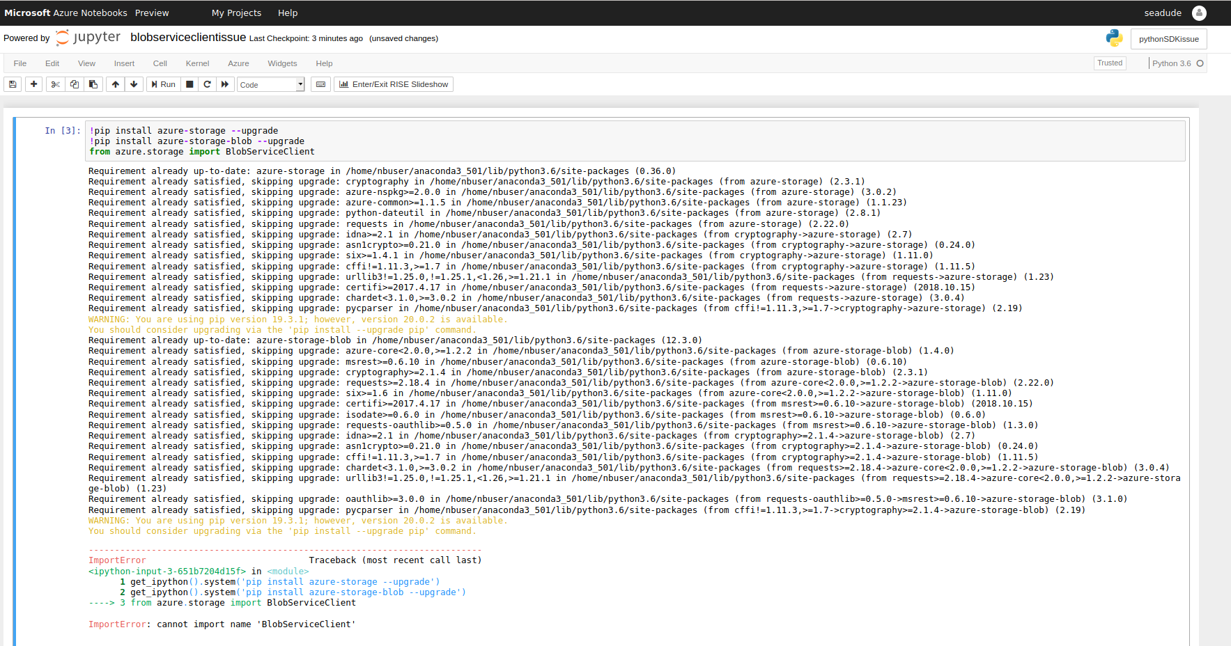我正在使用notebooks.azure.com学习python。我在试着用python管理Blobs。