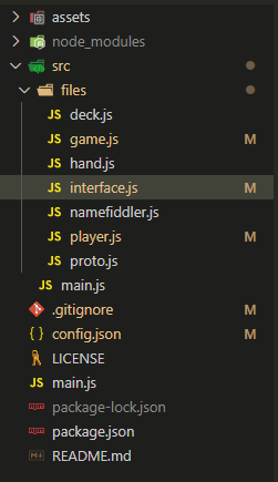 原因可能是您有循环依赖关系。这意味着player.js可能需要game.js或deck.js,因此当您在彼此需要的文件之间画线时,您将看到一个完整的循环。建议是重组您的依赖关系,以避免这种依赖结构。