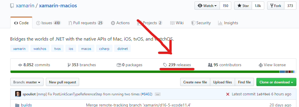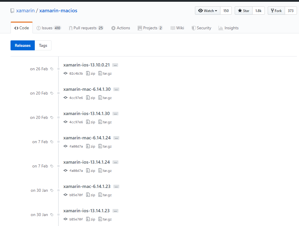 从共享链接可以找到iOS的早期版本,单击relesases,如下所示: