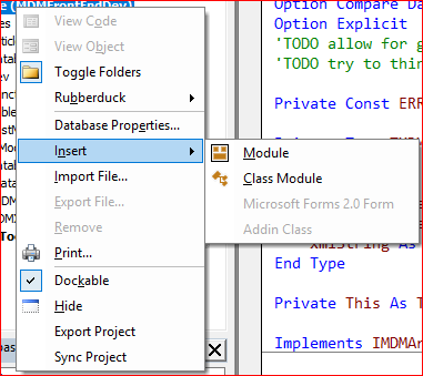 我的VBE插入菜单中有几个额外的项目。