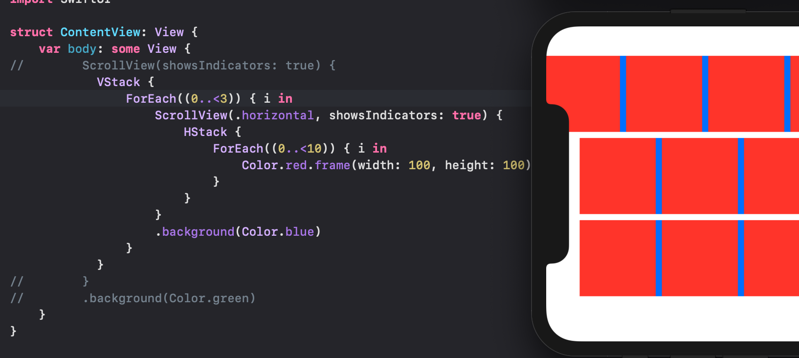 然而,在SwiftUI中似乎存在一个缺陷--在更改方向上,横向滚动视图得到了意外的偏移(内部,因为边界上所有外部的都是可以的)。我还没找到解决办法,但是.不管怎样,