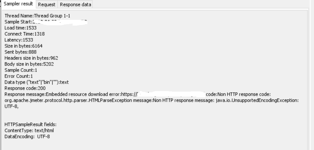 org.apache.jmeter.protocol.http.parser.HTMLParseException: java.io.UnsupportedEncodingException: UTF-8 at org.apache.jmeter.protocol.http.parser.LagartoBasedHtmlParser.getEmbeddedResourceURLs(LagartoBasedHtmlParser.java:233)