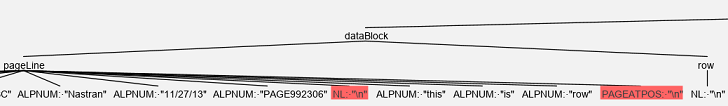 row: ALPNUM* NL ;这段代码仍然以ALPNUM的形式使用PAGE123456,而不是在找到页面之后切换到PAGENUM模式,如下面的示例及其AST所示: