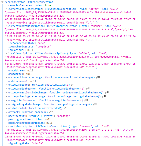 let answerString = JSON.stringify(pc.localDescription); //Returns to A所以当A收到B的回答时,它只是: