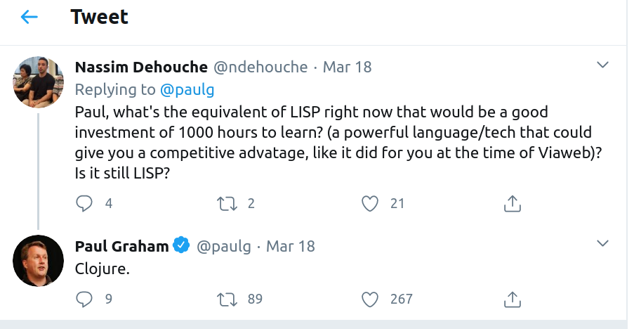[:a :m [:a :m :c] :d]))然而,我不会花很多时间去阅读40年前在Common上发表的文章,尽管我认为保罗·格雷厄姆( Paul )的书“黑客与画家”让人心神不宁。