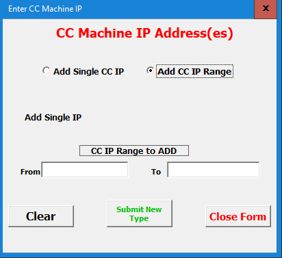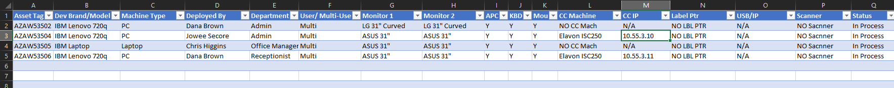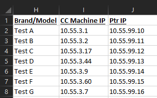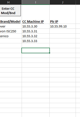 1 | IP Address | In Use? | 1 | Brand/Model | CC Machine IP |