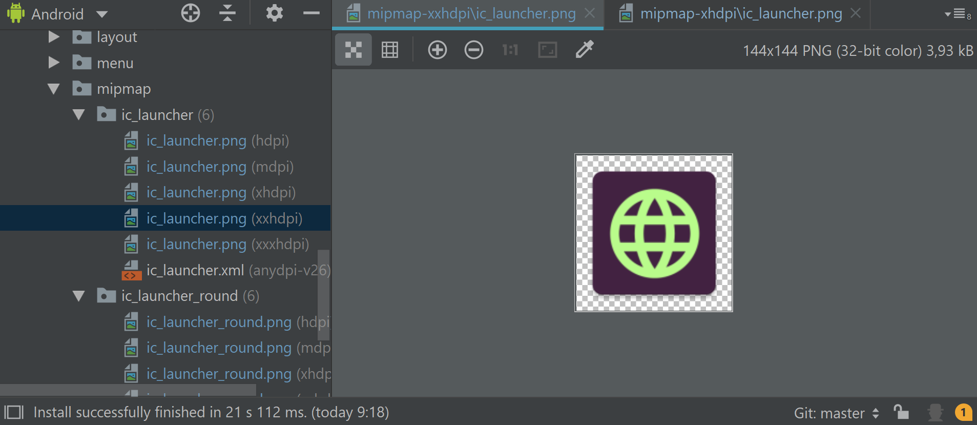 在带剪辑艺术的中创建启动程序图标()时,将在mipmap文件夹中创建图像: