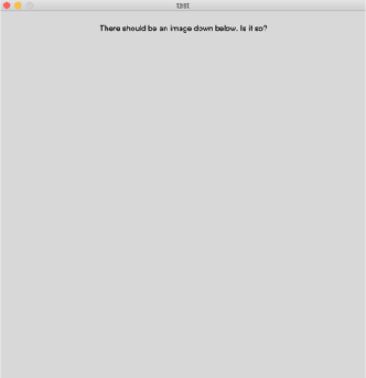$(POSTBUILD) $@ # only required on OSX, but call it anyway for portability因此,我得到了二进制myApp和应用程序myApp:当我在shell中键入./myApp时,每一个操作都很好(顶部图像),而双击图标就没有显示图像(底部图像)。