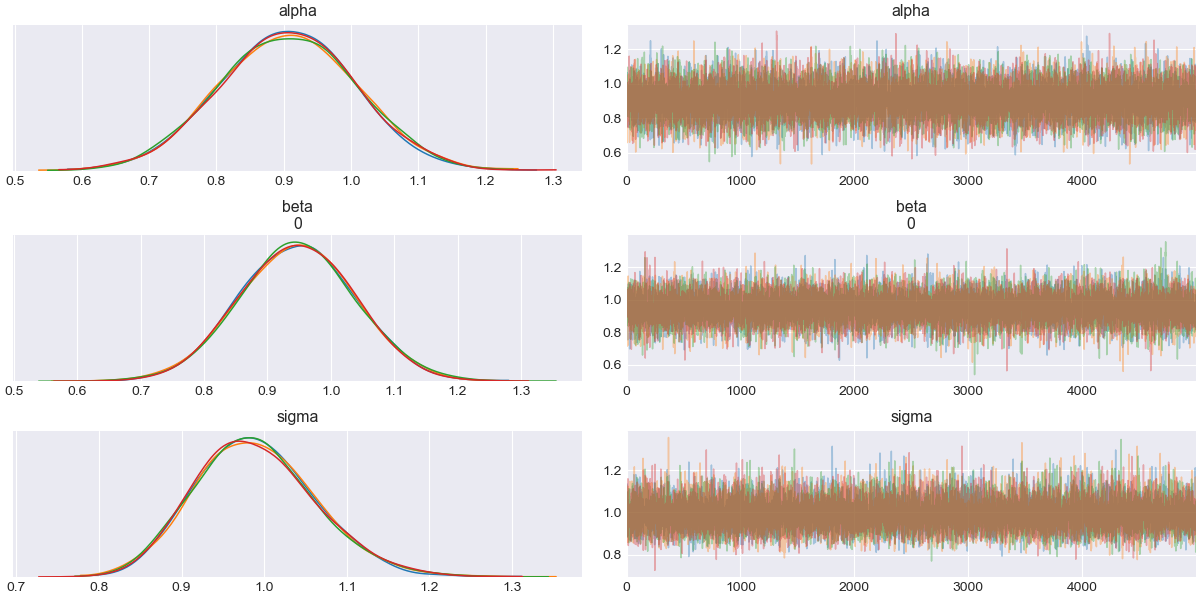 如果我以az.plot_trace(trace, compact = True)的形式运行跟踪图,那么我确实可以看到beta的两个维度都被正确地覆盖。我只在尝试用compact = False绘制不同轴的尺寸时才注意到这个问题。