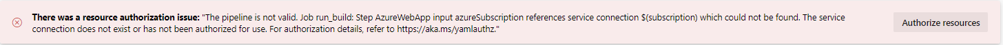 如果订阅仅定义为yaml中的变量,然后在AzureWebApp任务中引用,则管道将不会收到此错误。