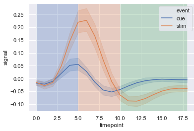 假设背景在时间点上不重叠,ax.axvspan()可以为您工作。