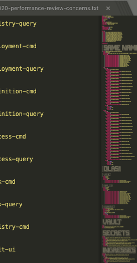 我想出的最好的方法(实际上不是什么解决方案,而是一个折衷方案)是使用大型的ASCII头(带有一些像patorjk这样的在线工具)。它使导航更容易一目了然,特别是在使用崇高文本时。